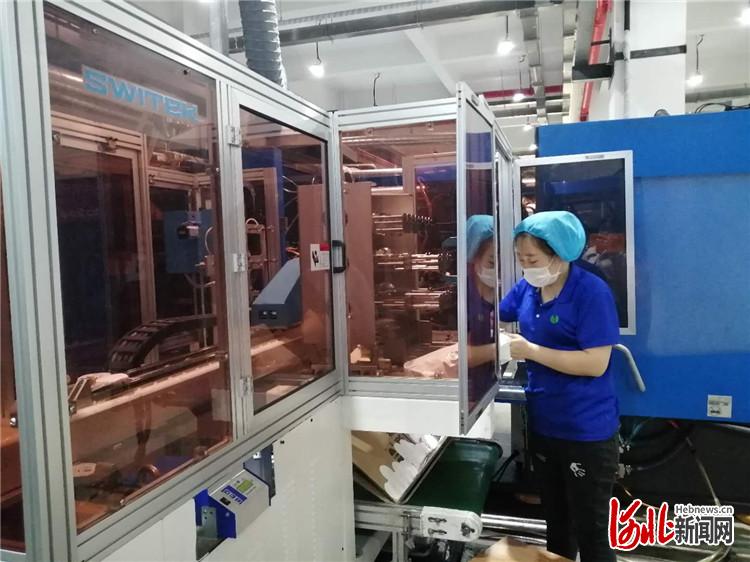 香河機(jī)器人小鎮(zhèn)內(nèi)的北京合益包裝容器有限公司生產(chǎn)車(chē)間內(nèi),工人正在進(jìn)行膜內(nèi)貼標(biāo)。 通訊員董旭旭攝