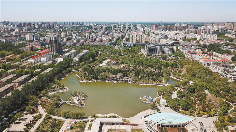 廊坊市人民公園風景如畫(航拍)。 記者楊錦樂攝