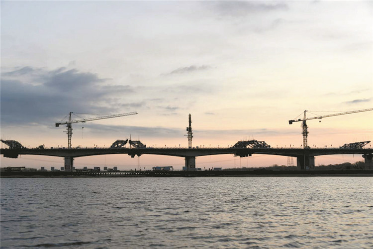 11月24日,記者在位于文安縣的施工現(xiàn)場看到,該橋所跨的趙王新河寬600米,始于白洋淀,終于海河,是京德高速公路途經(jīng)跨度最大的河水流域,也是津保航線的重要組成部分,更是津京地區(qū)乃至整個華北地區(qū)的主要泄洪區(qū)。為將施工對主河道汛期影響降到最低,大橋跨河部分采用(50+80+80+50)米預(yù)應(yīng)力混凝土連續(xù)梁的結(jié)構(gòu)形式,使用掛籃懸臂澆筑工藝,橋跨結(jié)構(gòu)全部采取空中作業(yè)。