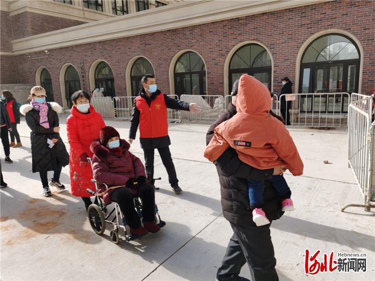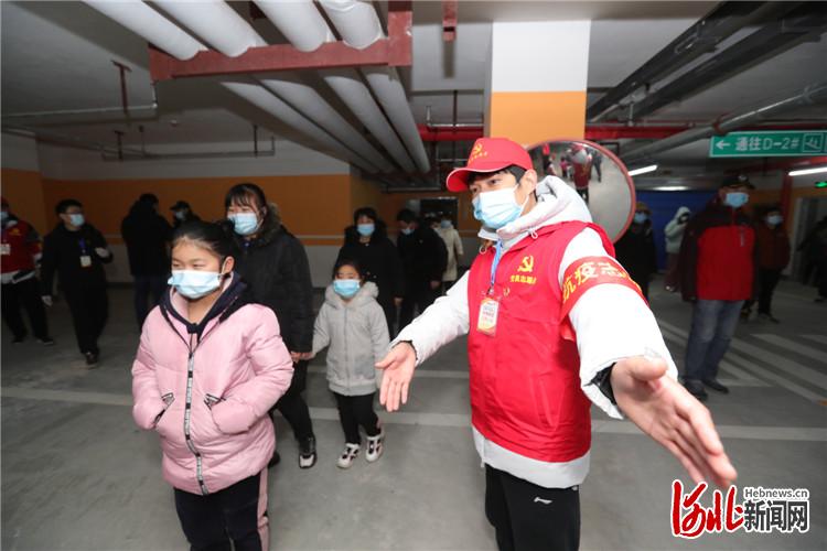 固安縣黨員志愿者組織居民有序排隊(duì)進(jìn)行核酸檢測。