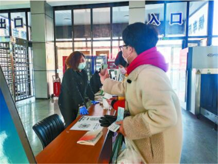 “發(fā)車之前,車輛進(jìn)行消毒后駛?cè)牒蜍噮^(qū),我們要先填寫好班車的信息,包括車牌號、始發(fā)地、終點(diǎn)站、發(fā)車和到達(dá)時間、載客人數(shù)、駕駛員和登記人姓名等,然后對每一位上車乘客進(jìn)行詳細(xì)的信息登記,既要落實(shí)車站的防控要求,又要對乘客負(fù)責(zé)!毙煨【照f。