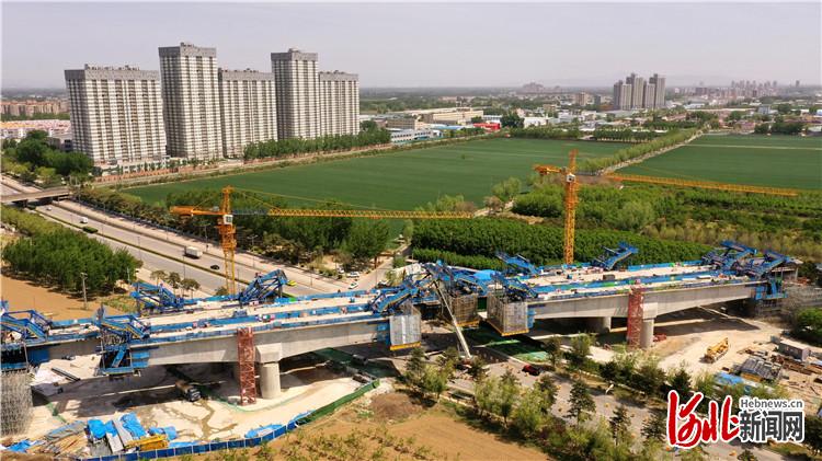 京唐城際鐵路跨燕郊東環(huán)路特大橋建設(shè)工地施工現(xiàn)場。通訊員陳童攝