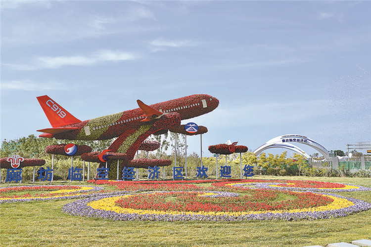 臨空經(jīng)濟區(qū)立體花壇與地標性建筑“臨空之門”。