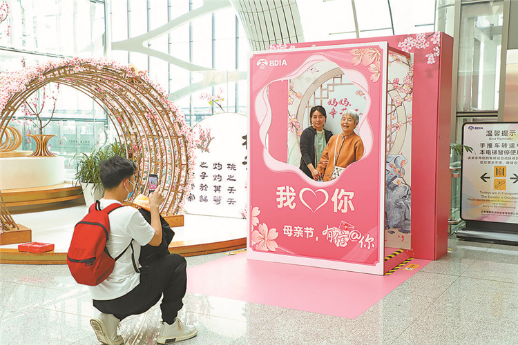 旅客在大興國際機場內(nèi)拍照留念。