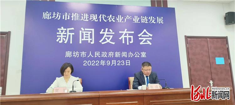 9月23日,廊坊市人民政府新聞辦公室組織召開(kāi)“廊坊市推進(jìn)現(xiàn)代農(nóng)業(yè)產(chǎn)業(yè)鏈發(fā)展”新聞發(fā)布會(huì),圖為會(huì)議現(xiàn)場(chǎng)。通訊員趙保江攝