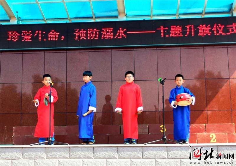 6月10日,秦皇島市海港區(qū)交建里小學(xué)四三班的孩子們正在表演“珍愛生命,預(yù)防溺水”主題詩(shī)朗誦。