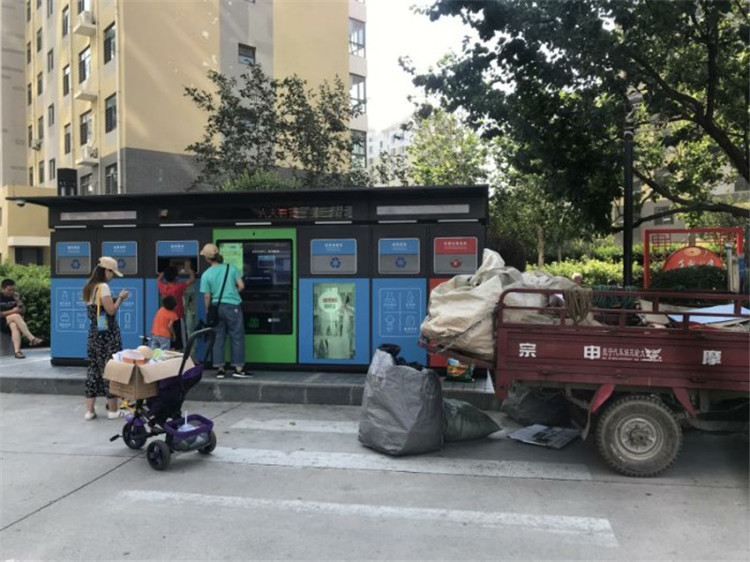 近日,秦皇島市首臺智能垃圾分類回收站擺進狀元府,長6米、高1.8米、寬2米的回收站由三種顏色組成,可回收垃圾為藍色箱,有害垃圾為紅色箱,中間綠色為操作區(qū)間。點開智能屏幕,可選擇“IC卡掃描投遞”“掃碼投遞”和“輸入手機號投遞”,居民高女士熟練地輸入手機號碼后,屏幕上顯示出垃圾類別和回收計費方法,塑料0.5元/公斤、金屬0.5元/公斤、紙品0.8元/公斤、織物0.2元/公斤、混投0.01元/公斤、有害0.0元/公斤。高女士先選擇紙品垃圾,投放門自動開啟,投放完畢后自動關閉,計重后將費用存入手機賬戶,隨后選擇下一項繼續(xù)投放。