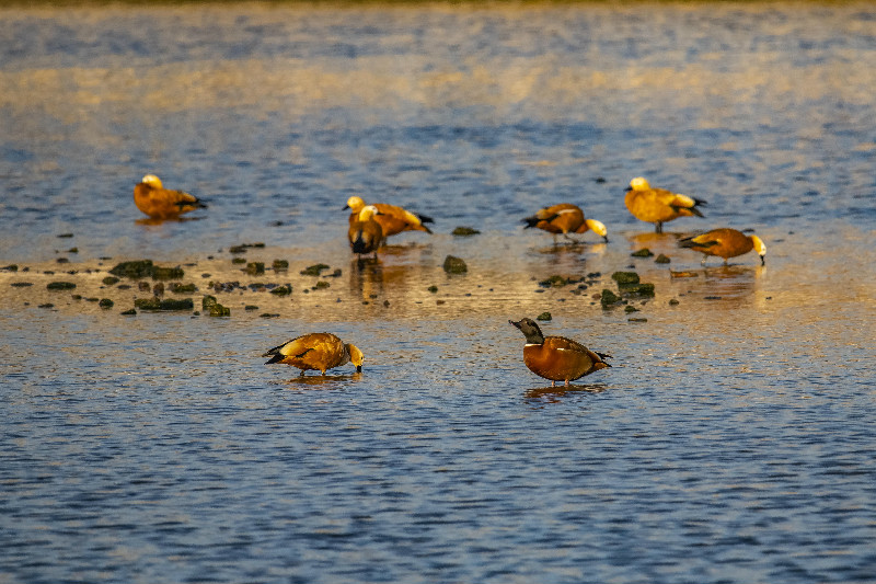 赤麻鴨在河內(nèi)覓食。謝慶和攝