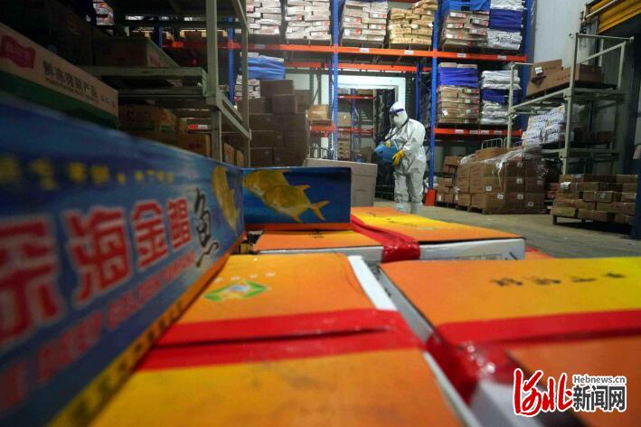 工作人員對(duì)國內(nèi)冷鏈商品進(jìn)行全面消殺。 王繼軍攝