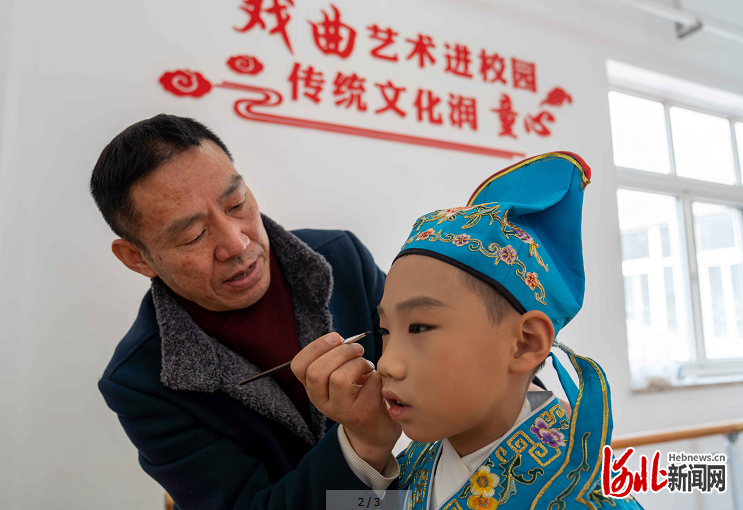 3月26日,在河北省秦皇島市海港區(qū)西港路小學(xué),老師在給戲劇社團(tuán)的學(xué)生化妝。當(dāng)日,河北省秦皇島市海港區(qū)西港路小學(xué)開展戲劇主題活動(dòng),學(xué)生們通過(guò)學(xué)習(xí)認(rèn)識(shí)戲曲臉譜、表演戲劇片段等,共同感受戲劇文化的魅力。郭楠攝影報(bào)道