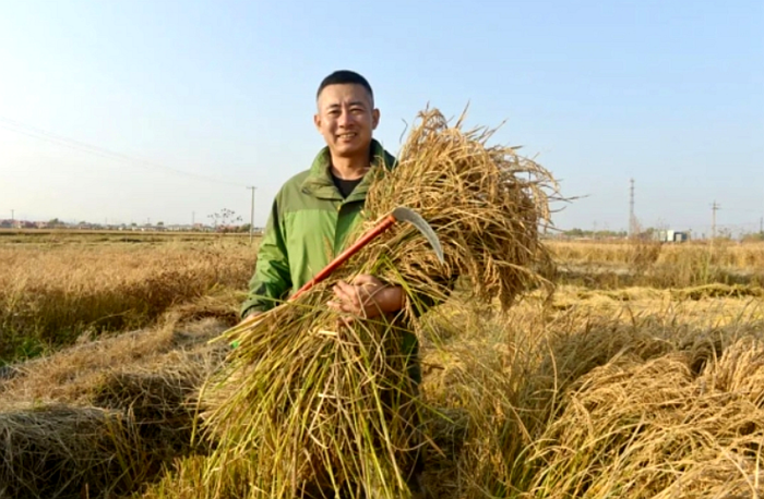 抱著沉甸甸的稻穗,陳繼東特別開心。