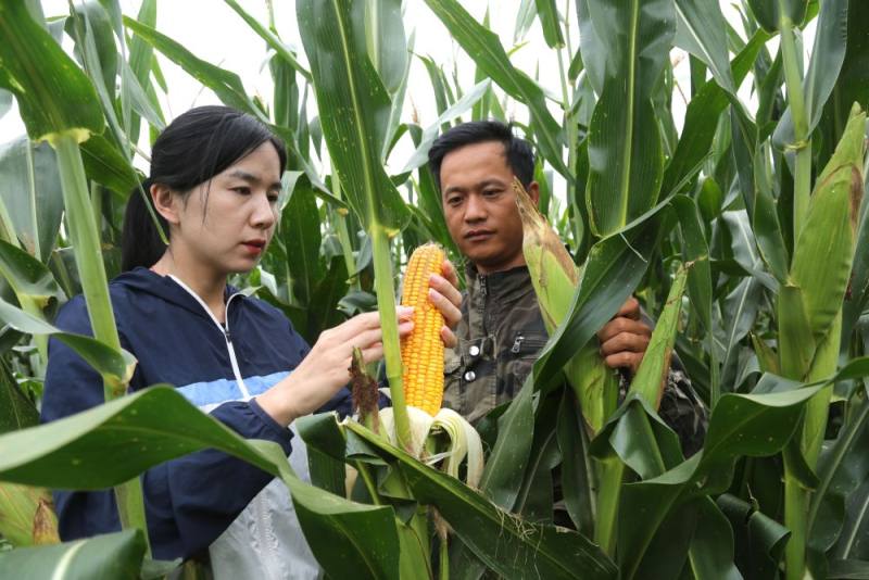 河北省邢臺(tái)市南和區(qū)的農(nóng)技人員在范莊村查看玉米灌漿情況。新華社記者趙鴻宇 攝