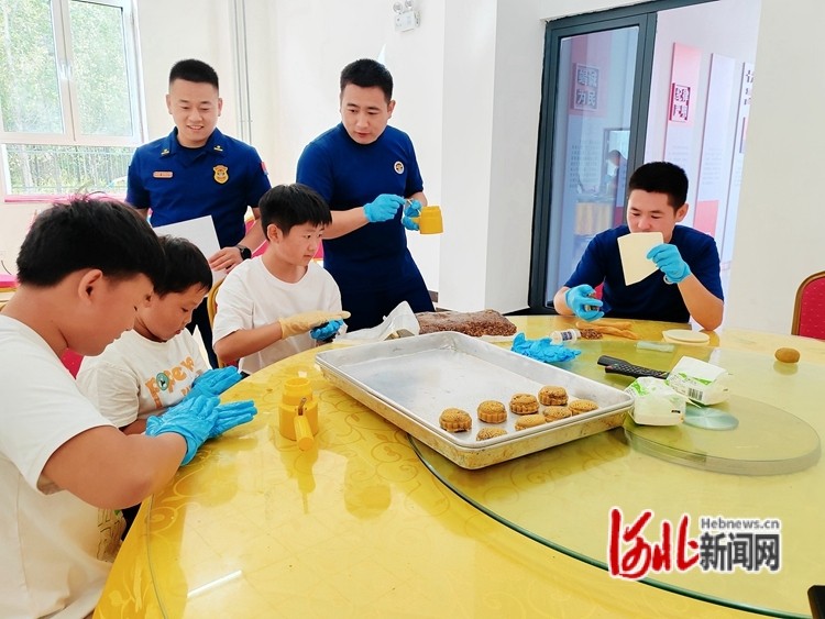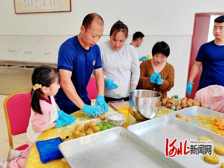 9月23日,中秋佳節(jié)來臨之際,秦皇島青龍響水溝消防救援站院內(nèi)熱鬧非凡,消防隊員的家屬及子女20余人走進紅門,與消防隊員們一起做月餅、迎中秋。張逸群攝
