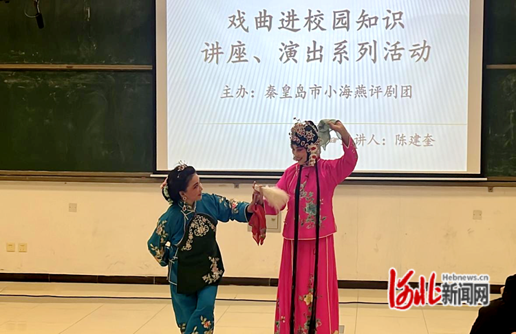 河北網(wǎng)訊(通訊員陳宣汝、黃奧)日前,河北環(huán)境工程學(xué)院開(kāi)展傳統(tǒng)文化進(jìn)校園活動(dòng)。該學(xué)院經(jīng)濟(jì)與管理系邀請(qǐng)秦皇島市小海燕評(píng)劇團(tuán)為師生講解傳統(tǒng)戲曲藝術(shù),進(jìn)一步弘揚(yáng)中華優(yōu)秀傳統(tǒng)文化,加強(qiáng)新時(shí)代美育教育,增強(qiáng)學(xué)生文化素養(yǎng)和文化自信。