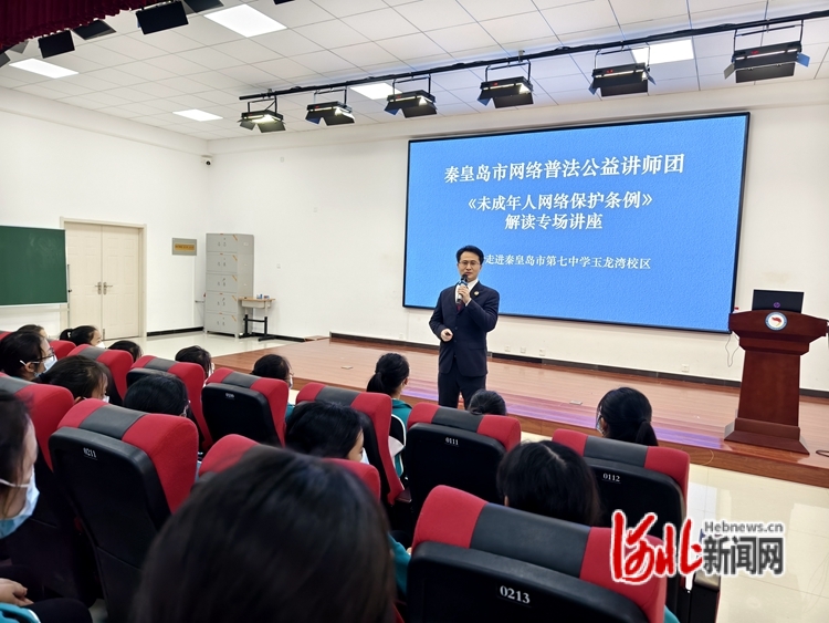 河北網(wǎng)訊(通訊員杜凱)12月27日,秦皇島市委網(wǎng)信辦聯(lián)合海港區(qū)委網(wǎng)信辦,邀請(qǐng)秦皇島市網(wǎng)絡(luò)普法公益講師團(tuán)成員、秦皇島市人民檢察院第八檢察部檢察官肖波走進(jìn)秦皇島市第七中學(xué)玉龍灣校區(qū),舉辦《未成年人網(wǎng)絡(luò)保護(hù)條例》解讀專場(chǎng)講座。