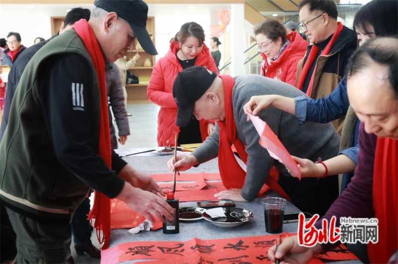 演出結(jié)束后,區(qū)書法家協(xié)會(huì)會(huì)員現(xiàn)場(chǎng)潑墨揮毫,為老同志們書寫春聯(lián)和福字,送上新年祝福。