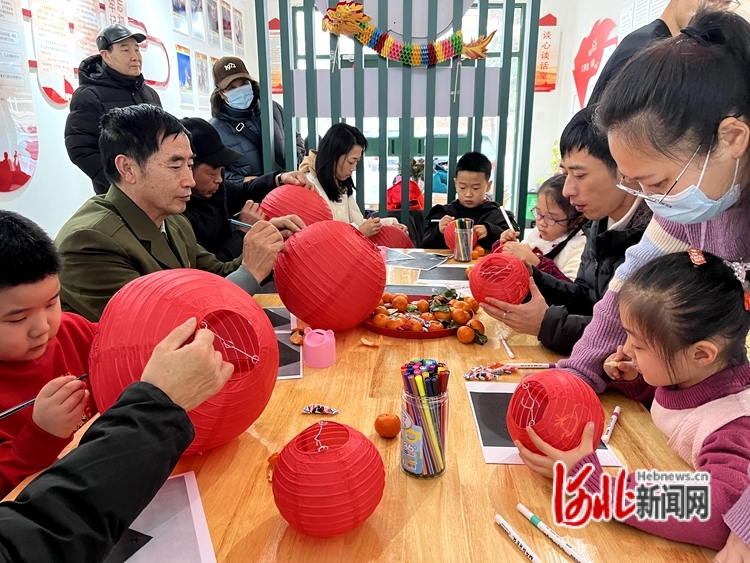 參加活動人員發(fā)揮想象力,一起在紅燈籠上作畫,卡通龍、元寶、元宵……一個個小小的燈籠增添了節(jié)日的喜慶氣氛。