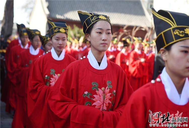 3月11日,中學(xué)生在參加正定文廟己亥春期釋奠禮。 記者趙永輝攝影報(bào)道