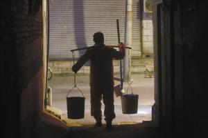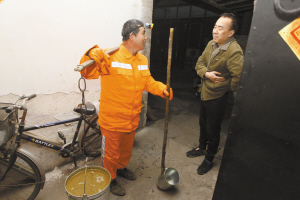昨日凌晨2時30分,城市已經(jīng)陷入一片沉寂,在保晉南街的胡同里,一名清掏工人正在用扁擔(dān)挑著兩個盛滿糞便的大桶,手拿著舀勺,從廁所走出來。吸糞車就停在街口。我離著這個吸糞車還有100余米,就能明顯地聞到一股讓人難以忍受的惡臭,但是這些挑著糞桶的掏糞工來到吸糞車旁,將糞便倒入糞罐里。