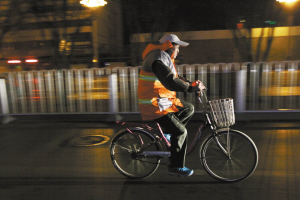 凌晨一點多,清掏班齊師傅上班路上。