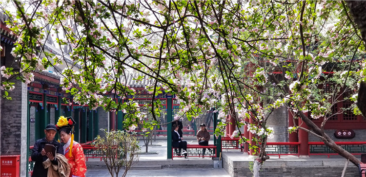 3月27日,游客在正定榮國(guó)府影視基地內(nèi)拍攝美麗的西府海棠。據(jù)工作人員介紹,今年的花期比往年早了近一周,這幾天正是海棠花開(kāi)得最艷麗的時(shí)候。河北新聞網(wǎng)記者田明、趙海江攝影報(bào)道