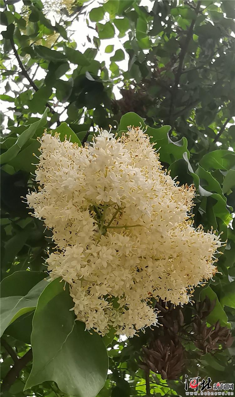 5月16日,記者在省會裕西公園“你好廣場”東面的園路上,遠(yuǎn)遠(yuǎn)地就看見廣場東南側(cè)有一大片開著白花的樹,滿樹的花朵又多又密,不等走近,一陣陣濃郁的花香撲面而來。丁香花的花期早過了,這花香可不是丁香冷冷的幽香,而是香得濃郁,濃得化不開。