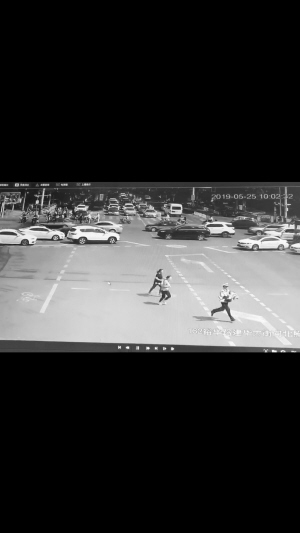 5月25日10時許,正在建華大街與裕華路交叉口附近值勤的張貝貝,忽然發(fā)現(xiàn)東西方向本應(yīng)正常行駛的車流稍顯擁堵。他欲上前疏導(dǎo)時發(fā)現(xiàn)了問題所在:只見,兩位女士快速從停在南北方向機(jī)動車道上一輛等紅燈的黑色轎車?yán)锍鰜,其中一位抱著孩子焦急地從北向南奔向道路中央,明顯闖了紅燈!昂⒆痈邿榇,需要趕緊送醫(yī)院!焙⒆拥哪赣H求助稱。張貝貝二話沒說直接接過孩子,一邊做出讓東西方向車輛讓行的手勢,一邊從北向南朝最近的河北省兒童醫(yī)院飛奔。正在另一處值勤的孫曉嘉看見這一幕后,意識到了事情的嚴(yán)重性,立即跑過來支援。