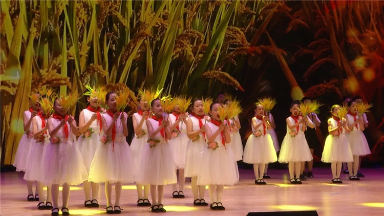 合唱《在希望的田野上》、《讓我們蕩起雙槳》等,唱出了孩子們童年的幸福生活。