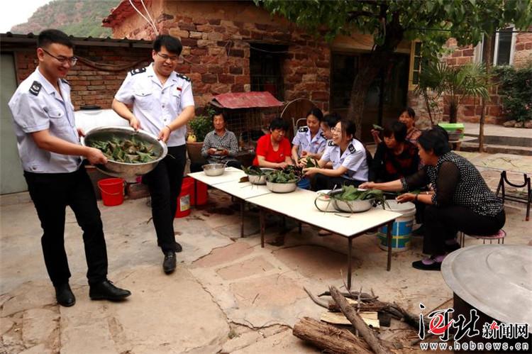 圖為國家稅務(wù)總局井陘縣稅務(wù)局志愿者與徐漢村村民一起包粽子、過佳節(jié)。