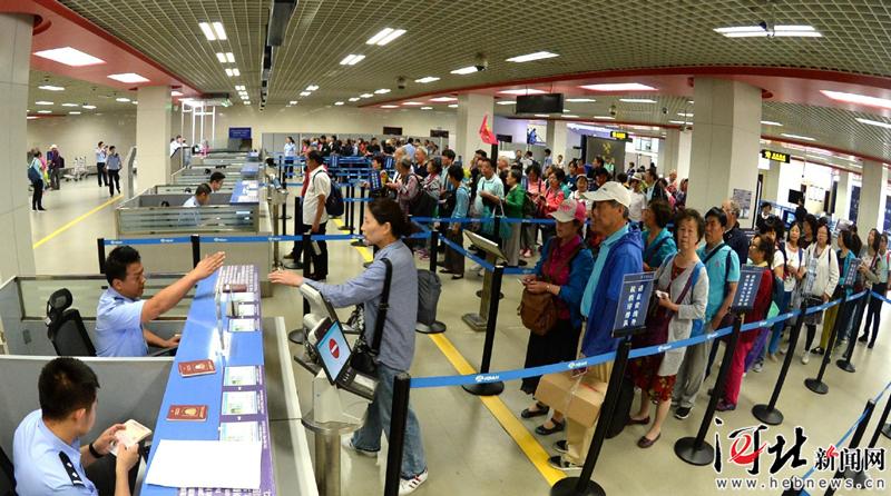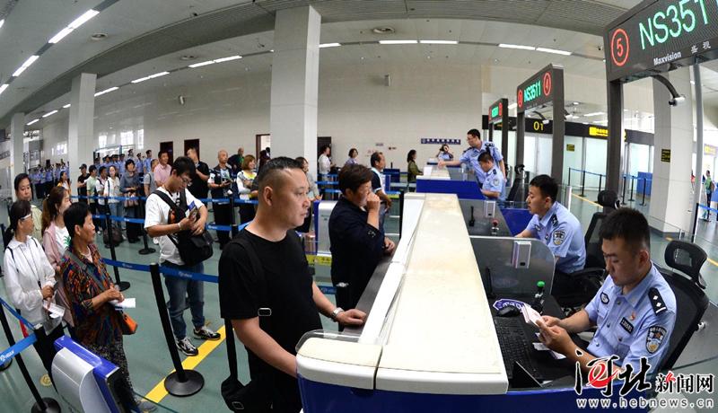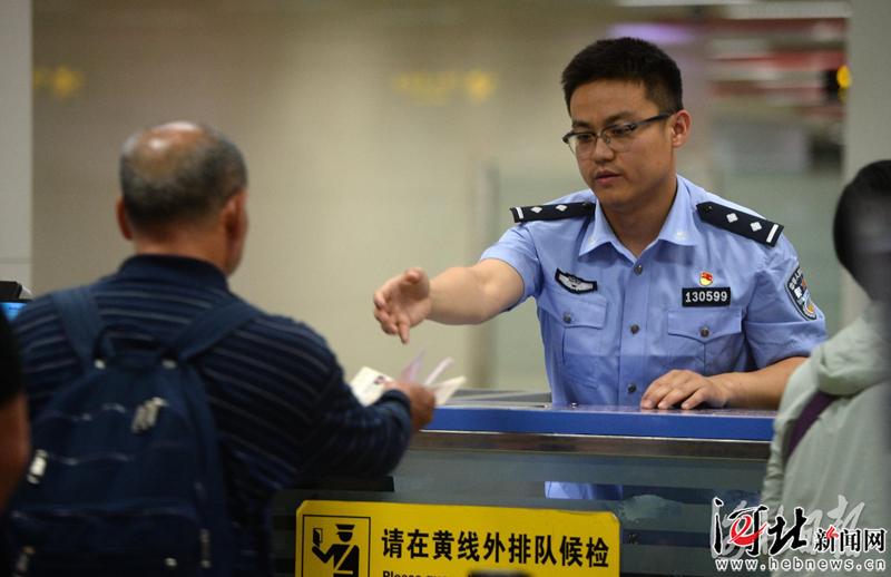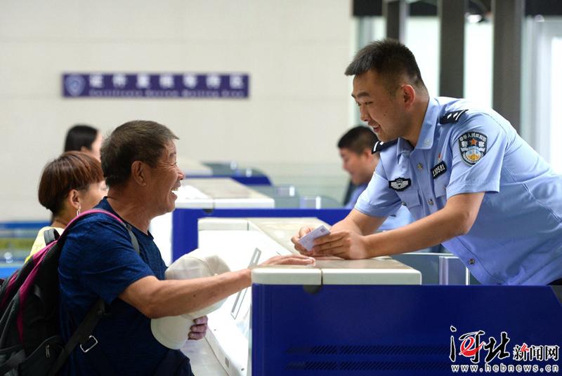 6月6日,石家莊出入境邊防檢查站民警為出境游客辦理相關(guān)手續(xù)。