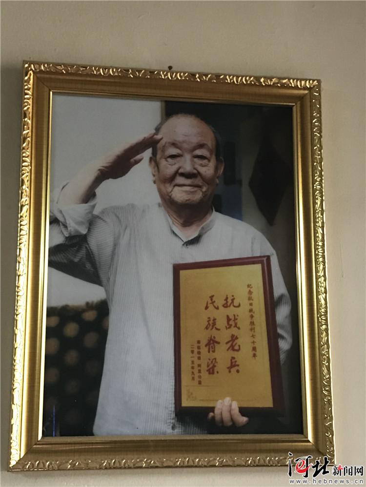 94歲的邢燕老先生目前居住在石家莊市一處老家屬院內(nèi),生活十分簡(jiǎn)樸,客廳墻上有一面鮮艷的國旗,下面掛著四世同堂的“全家福”照片。