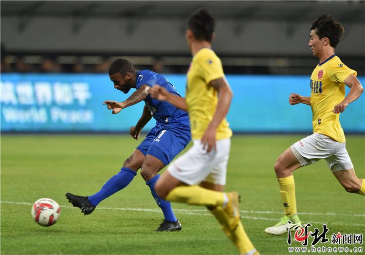 6月22日,石家莊永昌11號外援穆里奇(左一)射門瞬間。記者耿輝攝