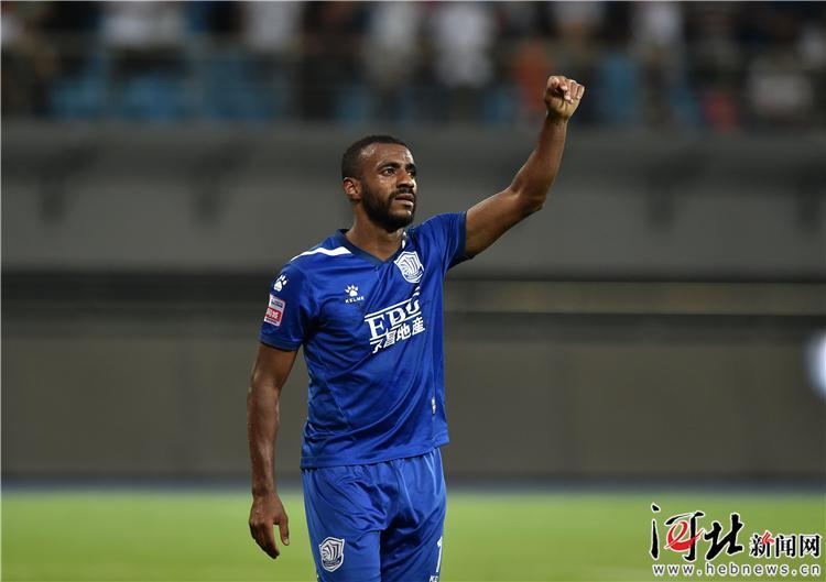 6月22日,石家莊永昌11號外援穆里奇慶祝進球。記者耿輝攝