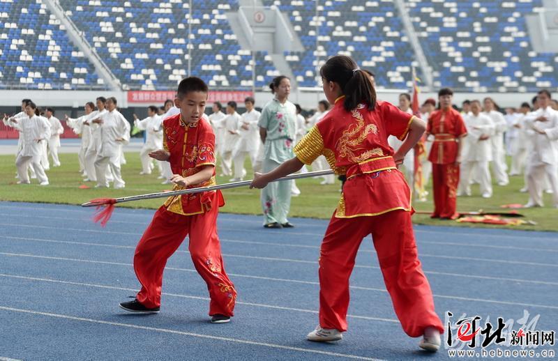 8月3日,石家莊市武術(shù)協(xié)會成員在進(jìn)行表演對練表演。