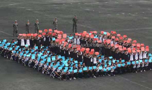 記者在現(xiàn)場(chǎng)看到,該校軍訓(xùn)匯報(bào)表演的內(nèi)容豐富多彩,除了隊(duì)列動(dòng)作展示、密集跑操表演之外,還有花樣方隊(duì)展示、軍歌嘹亮、拳術(shù)表演、手語操等項(xiàng)目。在花樣方隊(duì)展示中,數(shù)百名學(xué)生迅速擺出了 "70"" 中國夢(mèng) "" 心 "" 黨旗 " 等造型,令在場(chǎng)的每一個(gè)人為之動(dòng)容,并爆發(fā)出了熱烈的掌聲,將現(xiàn)場(chǎng)氣氛推向了高潮。隨后,伴著 " 有了強(qiáng)的國,才有富的家。家是最小國,國是千萬家 " 的歌曲,數(shù)百名學(xué)生整齊地做著手語操,表達(dá)了對(duì)祖國的熱愛。