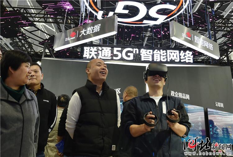 10月12日,2019中國國際數(shù)字經(jīng)濟博覽會主題展館中國電信展廳內(nèi),觀眾正在體驗5G環(huán)境下的VR游戲。記者趙永輝、趙海江 攝
