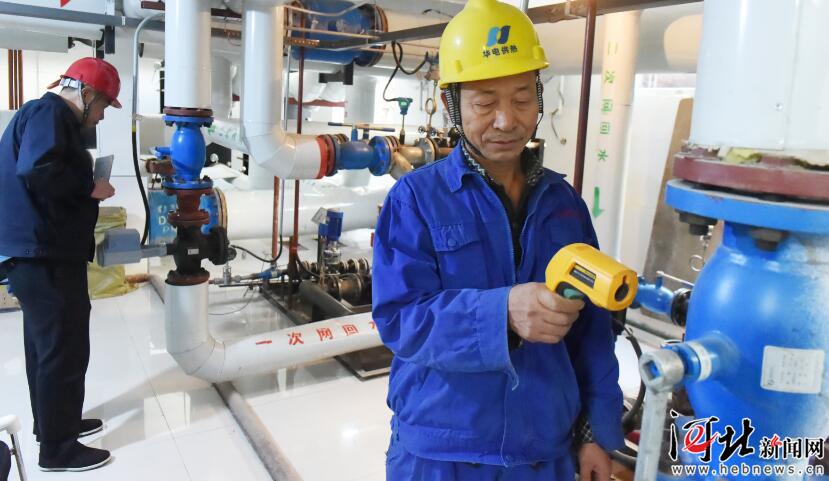11月14日下午,石家莊華電供熱集團(tuán)有限公司工作人員在用點(diǎn)溫計(jì)測(cè)量換熱機(jī)組供回水溫度。據(jù)悉,石家莊市區(qū)于11月15日0時(shí)正式供暖,主城區(qū)各供熱企業(yè)、換熱站已按達(dá)標(biāo)供熱標(biāo)準(zhǔn)提溫調(diào)試運(yùn)行,確保居民家中溫度達(dá)標(biāo)。 記者史晟全攝影報(bào)道