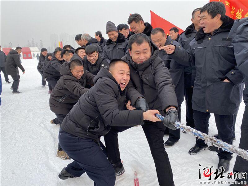 12月25日,正定縣首屆冰雪運(yùn)動(dòng)會(huì)暨正定冰雪節(jié)開(kāi)幕。圖為雪地拔河項(xiàng)目現(xiàn)場(chǎng)。 記者吳培源攝