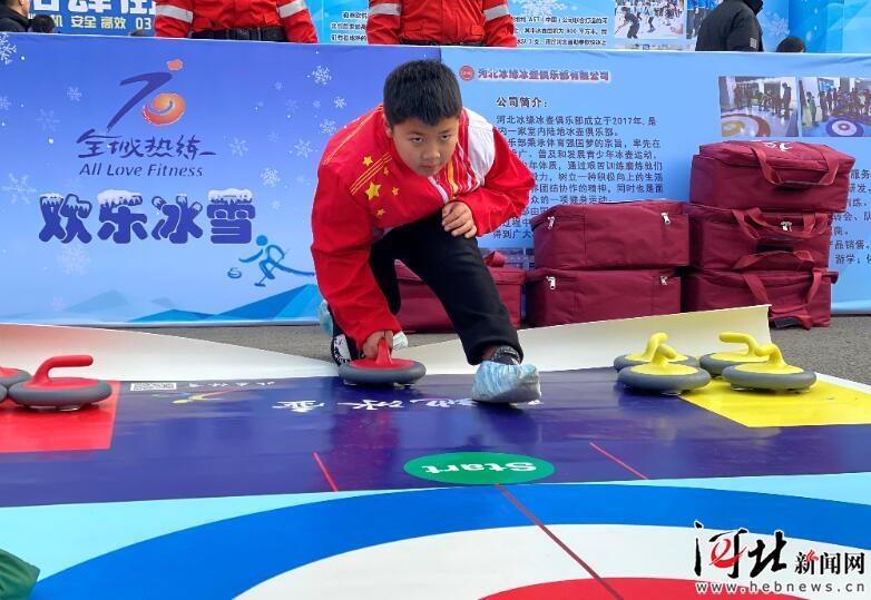 圖為石家莊市青園街小學選手參加陸地冰壺體驗賽。 記者吳培源攝