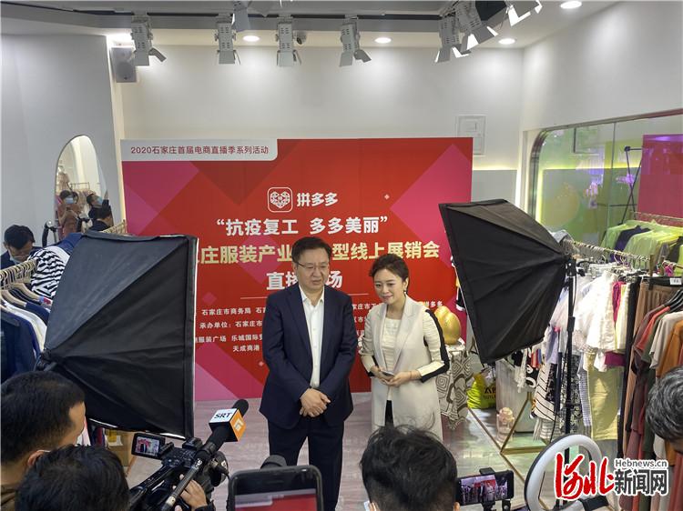 河北新聞網(wǎng)5月9日訊(河北日?qǐng)?bào)記者吳培源)今天,2020年石家莊服裝產(chǎn)業(yè)大型線上展銷會(huì)正式開啟。石家莊市副市長(zhǎng)蔣文紅走進(jìn)拼多多直播間,為石家莊服裝產(chǎn)業(yè)代言,助力商貿(mào)流通業(yè)復(fù)工復(fù)產(chǎn)達(dá)效,加快推進(jìn)商品市場(chǎng)和傳統(tǒng)商業(yè)借助電商直播轉(zhuǎn)型升級(jí)。