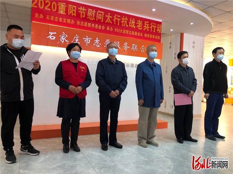 河北新聞網(wǎng)10月22日訊(河北日報(bào)記者董昌)今天,河北省石家莊市文明辦、石家莊志愿服務(wù)基金會、河北992大家?guī)椭驹阜⻊?wù)隊(duì)、長安區(qū)福壽居養(yǎng)老院聯(lián)合開展重陽節(jié)慰問太行抗戰(zhàn)老兵行動,為61名抗戰(zhàn)老兵送去米、面、油、牛奶等慰問品,向在抗日戰(zhàn)爭中浴血奮戰(zhàn)的前輩們送去節(jié)日的祝福。