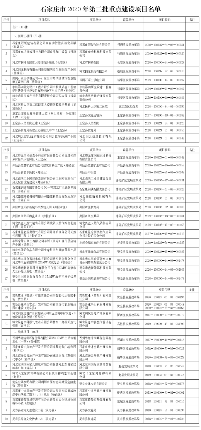 發(fā)布石家莊市2020年第二批重點建設(shè)項目名單