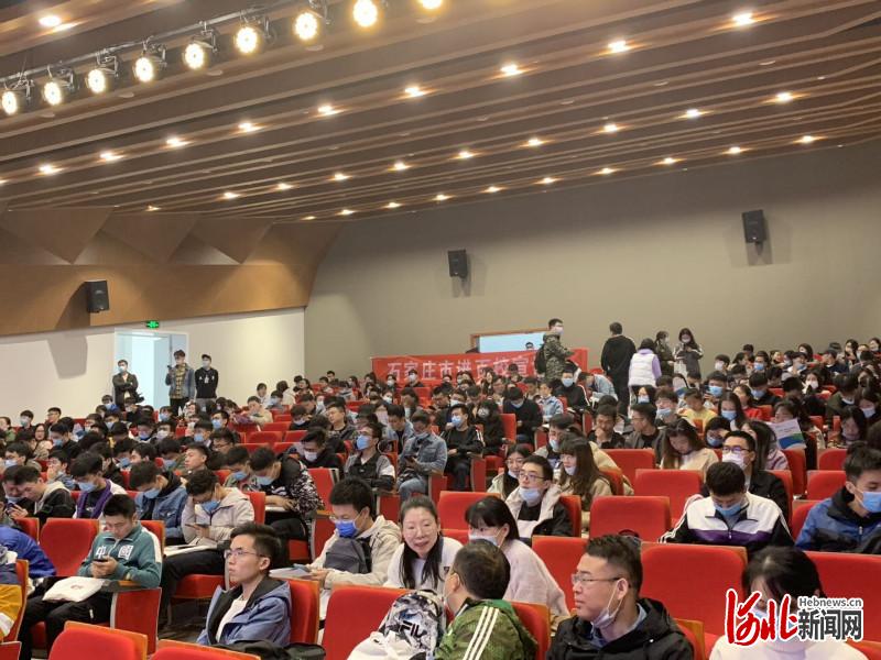 在宣講現(xiàn)場,巨型宣傳展板、宣傳條幅以及石家莊市情宣傳片,營造了良好的宣講氛圍。現(xiàn)場工作人員有序引導(dǎo)學(xué)生們掃碼簽到、領(lǐng)取高洽會(huì)和人才政策宣傳材料、檢測體溫、排隊(duì)入場,秩序有條不紊,尤其是精心準(zhǔn)備的專門定制的小禮物,給參會(huì)學(xué)子帶去了驚喜。