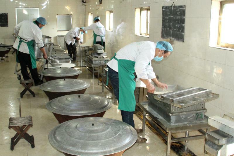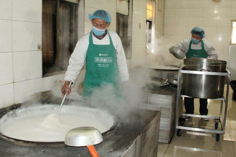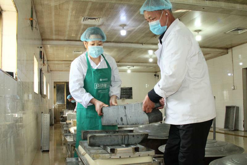老味道的平山古月手工豆腐被農(nóng)民的帶頭人商文軍做成了產(chǎn)業(yè),他聚集了古月鎮(zhèn)優(yōu)秀的豆腐師傅,修建了古月鎮(zhèn)第一座占地2000平方米的規(guī);垢止ぷ鞣,從黃豆、水質(zhì)這樣最基本的原材料,到泡豆、磨豆、過濾、煮漿等十道工序,200多條操作要領(lǐng),一點一點認(rèn)真細(xì)致掌握和把控,每一個細(xì)節(jié)都堅持做到最好。