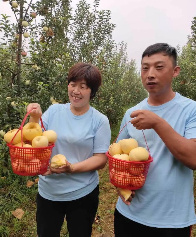 現(xiàn)代農(nóng)業(yè)機(jī)械化,引進(jìn)世界優(yōu)良品種:黃金密富士蘋果,三個品種嫁接一棵種苗,兩次嫁接(根:新疆野蘋果;中間砧木:美國M26;品種:富士黃金蜜)。