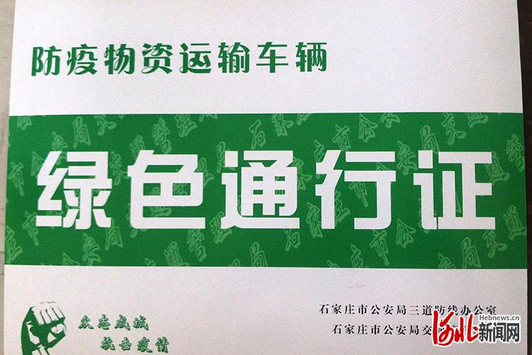 石家莊市為防疫物資運輸車輛開具綠色通行證。圖片源自“市場保供群”