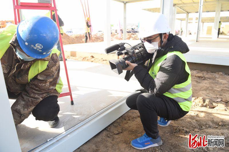 石家莊黃莊公寓隔離場(chǎng)所開(kāi)工建設(shè)以來(lái),李鵬每天拍攝、采訪,晚上加班寫稿,然后編發(fā)制作、推送,常常忙到次日凌晨才在疲憊中入眠。其間,遠(yuǎn)在邯鄲武安妻子和4歲的女兒會(huì)和他視頻。每次女兒通過(guò)手機(jī)喊他“爸爸、爸爸……”李鵬的眼中就會(huì)泛起淚花,但馬上取而代之的是建設(shè)者們忙碌的背影。