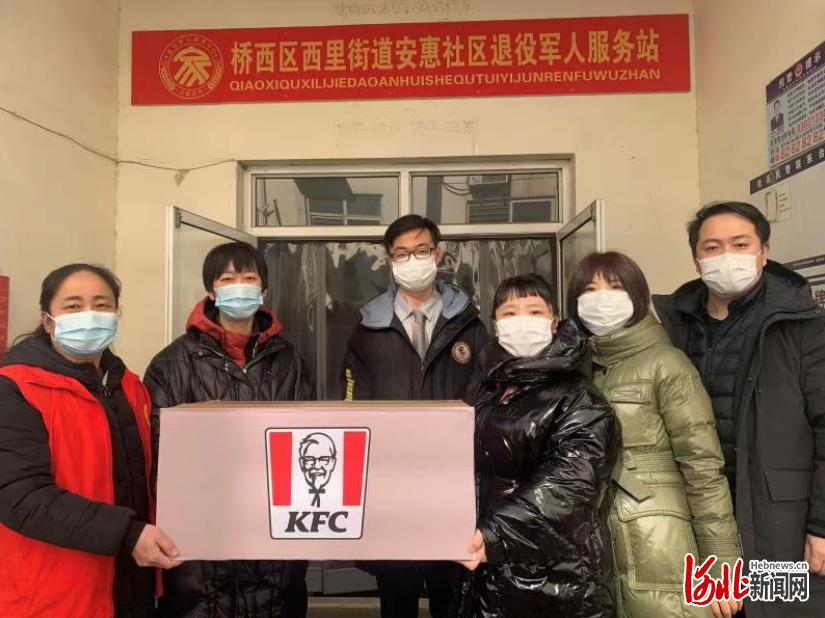 河北肯德基準(zhǔn)備的愛(ài)心餐送到橋西區(qū)西里街道安惠社區(qū)。