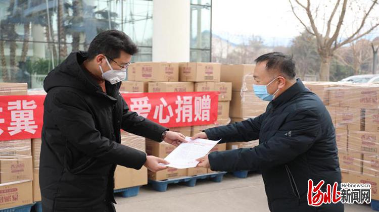 拼多多工作人員把貨物清單交予石家莊市高新區(qū)管委會副主任戴寶進(jìn)。 呂伯成攝
