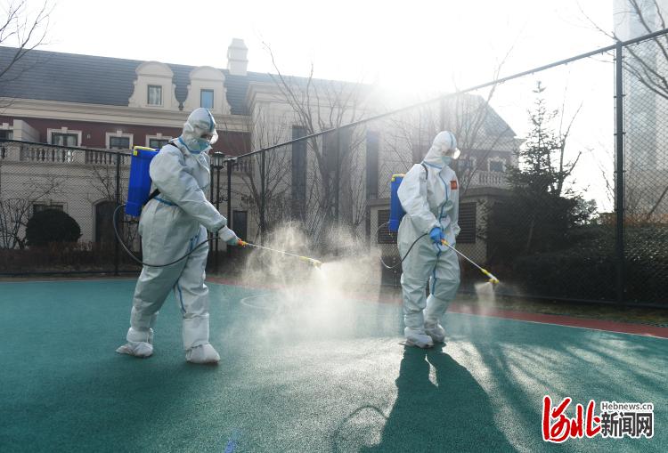 1月26日,石家莊市裕華區(qū)消防救援大隊(duì)在轄區(qū)社區(qū)內(nèi)進(jìn)行消殺作業(yè)。河北日?qǐng)?bào)記者史晟全攝